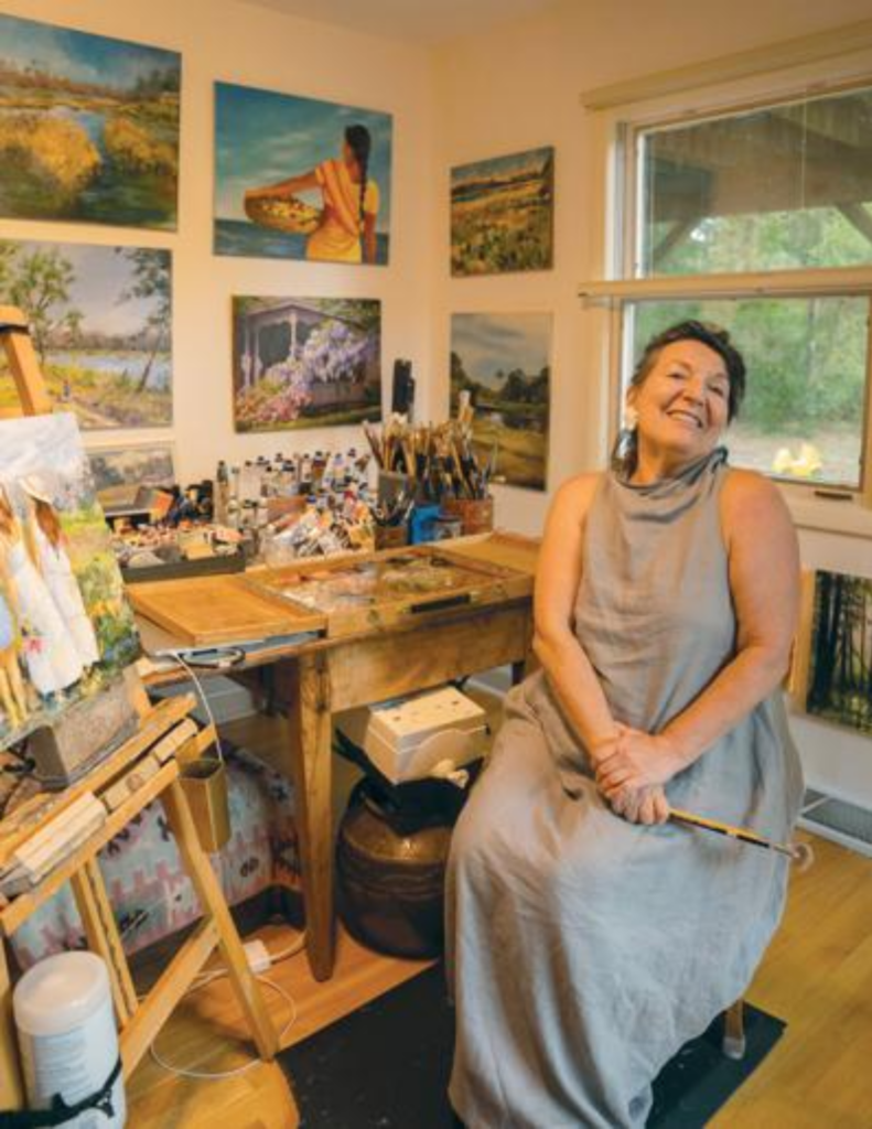 Now a Wilmington local, Katia’s identity is anchored in the salt air of Wrightsville Beach and the “blue opulence” of the Lowcountry. Whether painting en plein air alongside her bilingual pug, Charlie, or working in her studio, she translates a lifelong reverence for art into luminous depictions of marshes and village vistas. Drawing inspiration from the masters of her lineage and the energy of Van Gogh, Katia bottles the atmospheric grace of the coast.