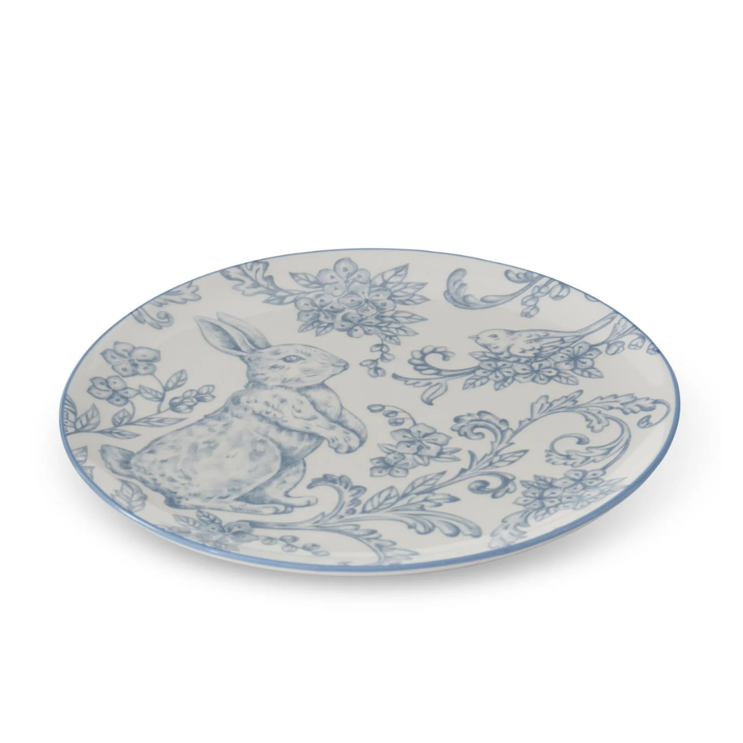 Add a touch of timeless charm to your table with this 8-inch dolomite plate. Featuring a classic blue and white bunny illustration nestled among delicate floral scrolls and songbirds, it captures the effortless elegance of nature. Whether you are hosting a weekend brunch or simply brightening your daily décor, this durable piece brings a fresh, whimsical energy to any setting, making it a beautiful choice for any occasion year-round.