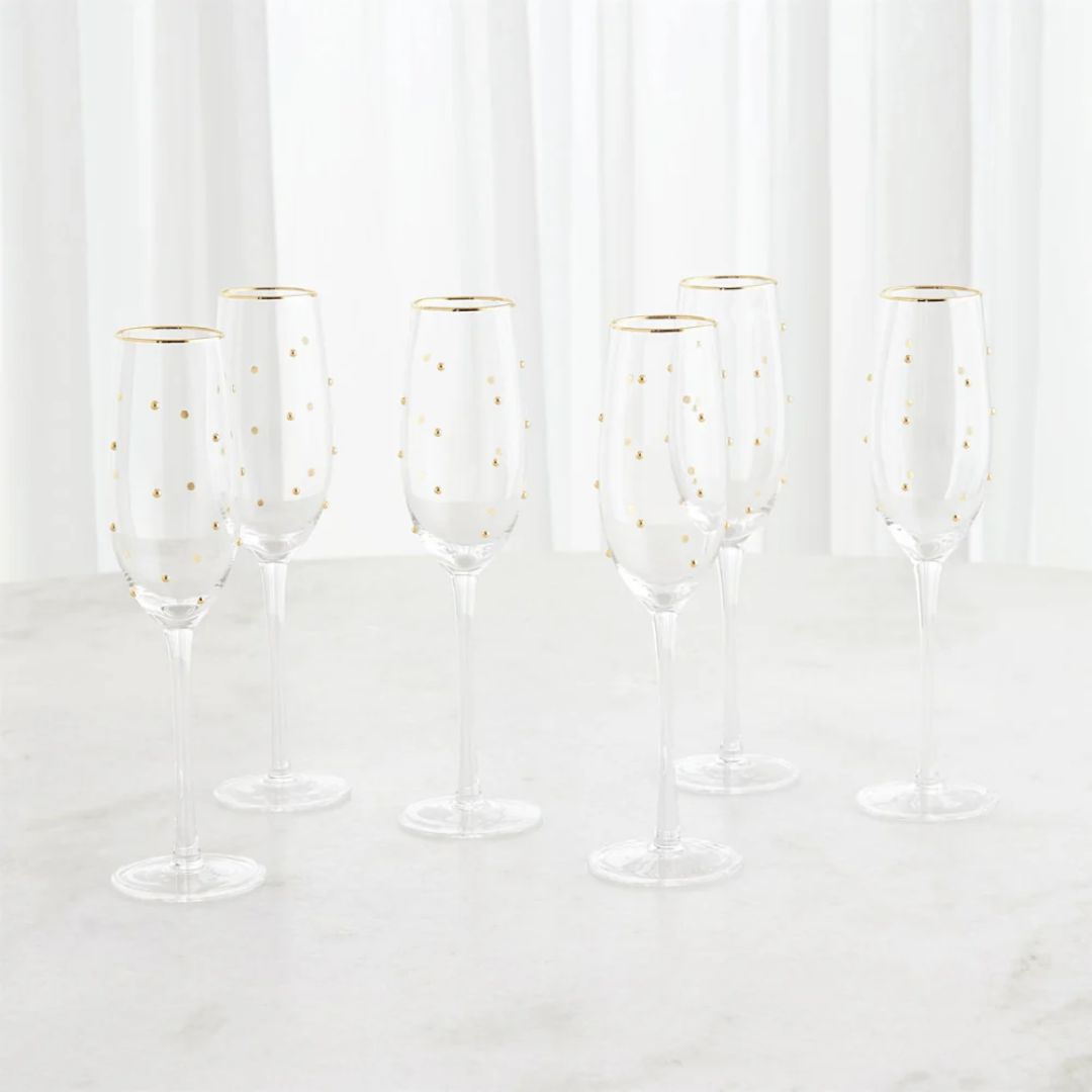 Pop, fizz, and clink in style! Elevate your entertaining with our Celebration Glassware Collection, because your bubbles deserve a beautiful home. Handcrafted from clear glass and sprinkled with dainty golden dots and a radiant gold rim, these flutes are the definition of “sophisticated festive.” Whether you’re planning a romantic dinner for two or looking for a unique Valentine’s Day gift, these glasses ensure every sip feels like a special occasion.