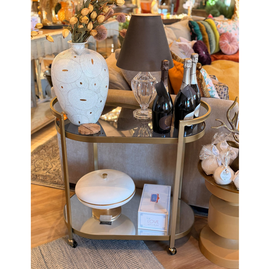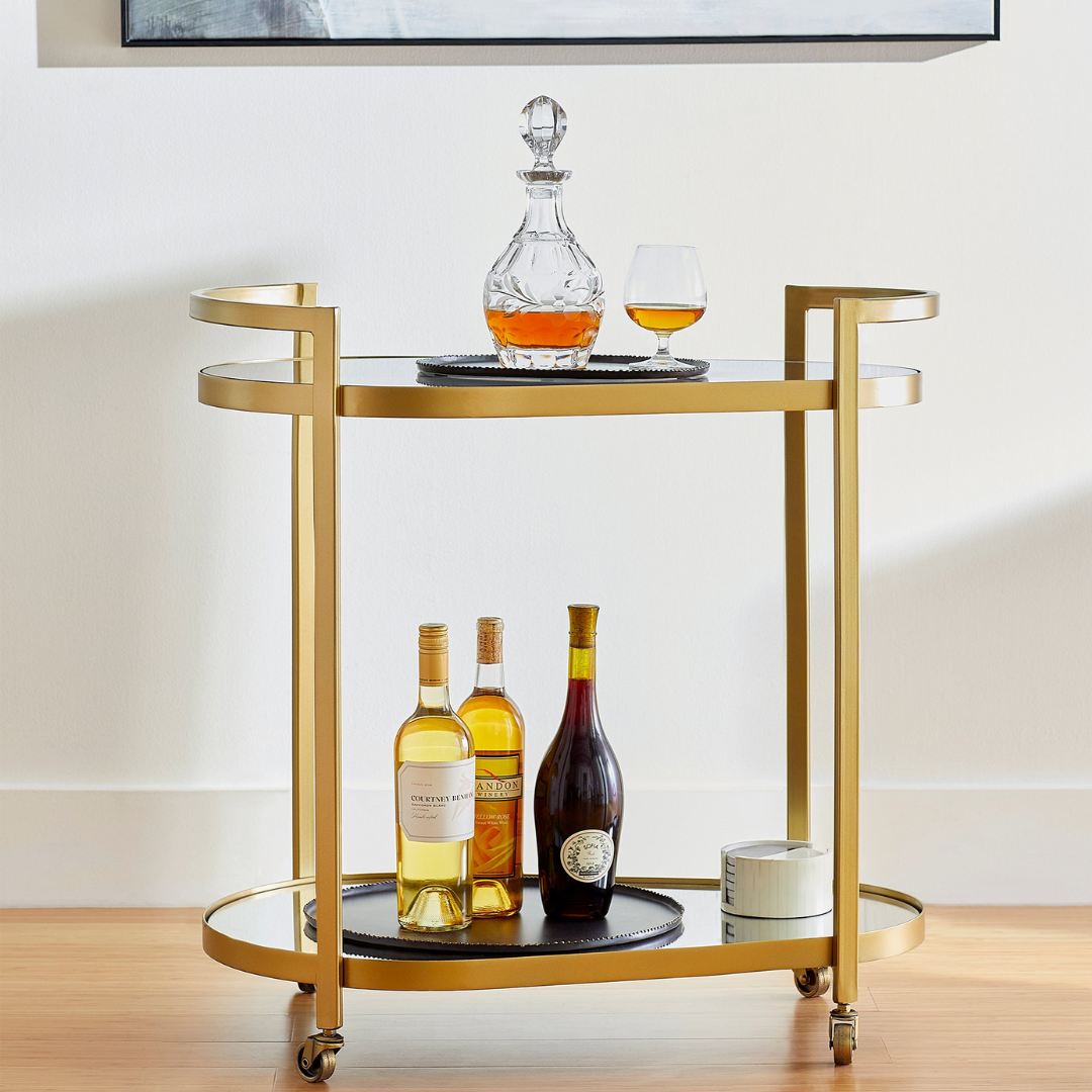 Upgrade your hosting game with the Cosmo Bar Cart, where modern glamour meets total practicality. This stunning gold piece features a durable iron frame and reinforced mirrored shelves that create a “majestic and royal” showcase for your favorite spirits and glassware. Designed with sleek curves and a timeless mid-century silhouette, it’s a luxurious addition that fits perfectly into any kitchen or social area. It’s not just a cart; it’s a centerpiece in motion.