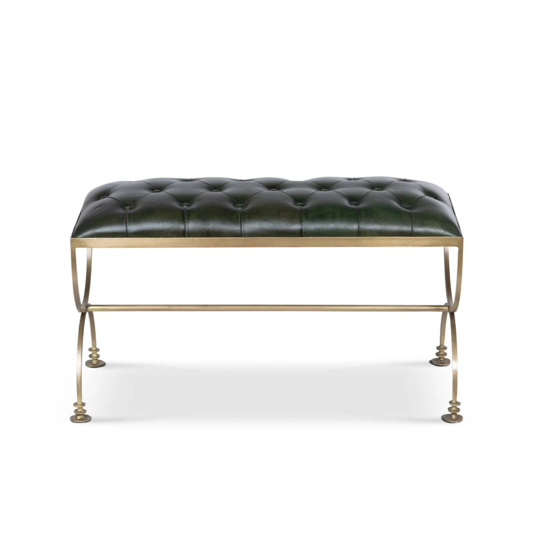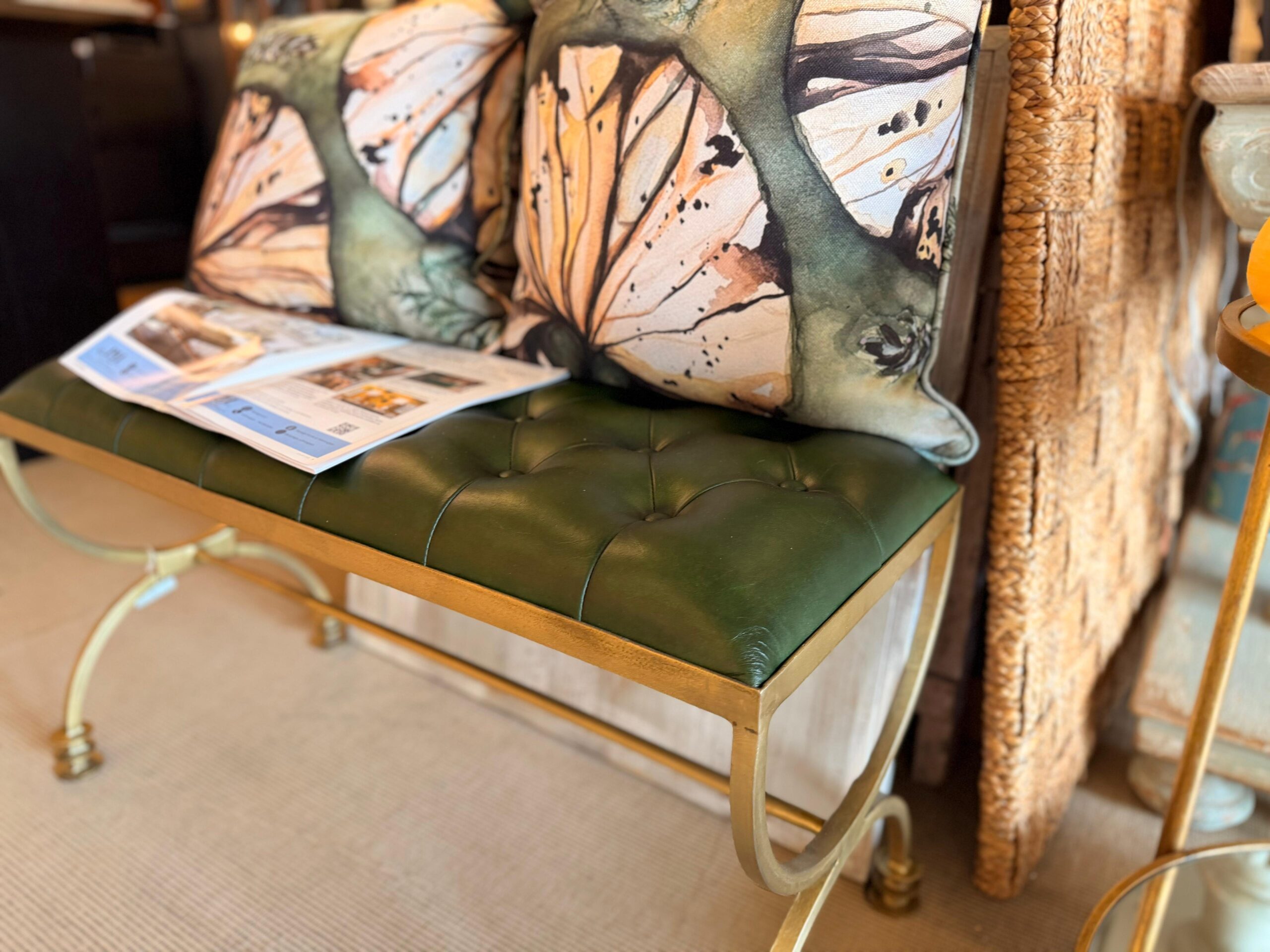 Ground your spring refresh in luxury with the Farleigh Leather Bench, our featured Product of the Month. The rich, tufted forest green leather and airy brass frame create a sophisticated silhouette that feels both grounded and light for the new season. At 35.5″ wide, it’s the perfect punchy accent for an entryway or at the foot of a bed, offering a timeless blend of organic color and polished metal.
