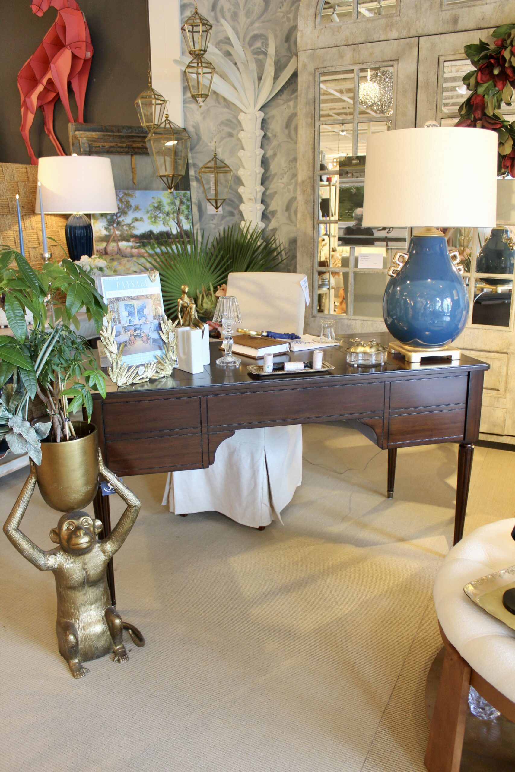 A lovely accessory for introducing an energized, uplifting quality to your décor. Clear acrylic is framed by a striking grove of polished brass florals in an enameled finish, accented by lustrous white nuggets of stone-like glass.